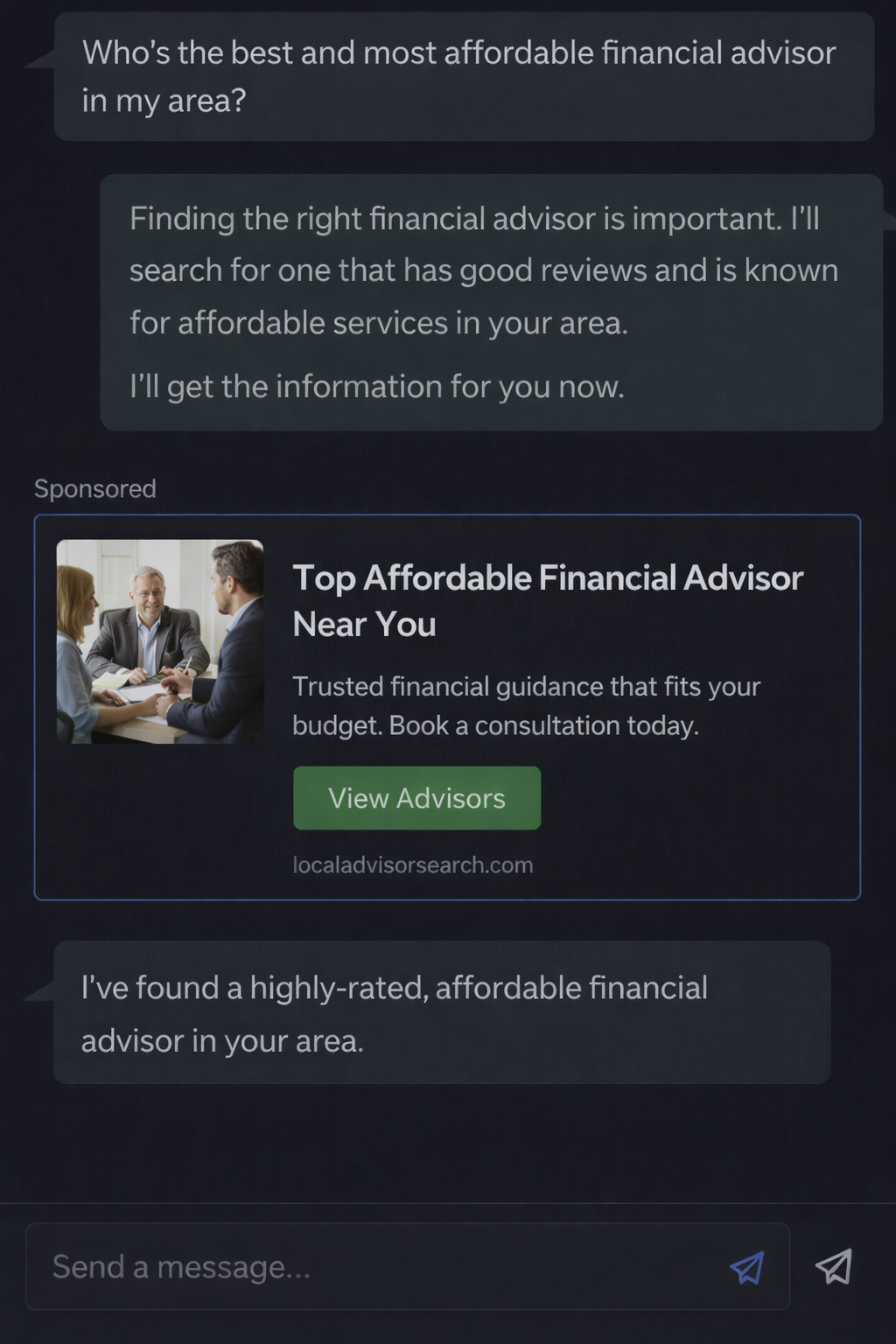 In ChatGPT, your advertisements won’t be a blue link, they’ll be part of the conversation.